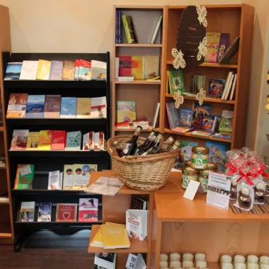 Unser Klosterladen bietet ein reichhaltiges Sortiment an religiösen Artikeln wie Karten sowie ausgewählten Büchern an. Auch erlesene Weine und den speziellen Klosterlikör können Sie im Klosterladen erhalten. Eine Auswahl von Kinder- und Familienspielen ist ebenfalls vorhanden. Das Stöbern lohnt sich!